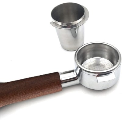 Embudo dosificador magnético para café espresso. Su imán de alta potencia garantiza una fijación firme al portafiltro, evitando derrames y desperdicios durante la molienda.
